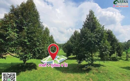 ขายสวนทุเรียน 4 ไร่ ใกล้ซอย 10 สุราษฎร์ธานี #R002 สวนทุเรียนสวยพร้อมให้ผลผลิต เหมาะสำหรับผู้ที่มองหาธุรกิจเกษตรทำเง