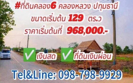 #ที่ดินคลอง6 คลองหลวง ปทุมธานี ขนาดเริ่มต้น 129-139 ตร.ว ราคาเริ่มต้นที่ 968,000.- 1,188,000 ล้านบาท เงินสด #ที่ดิน