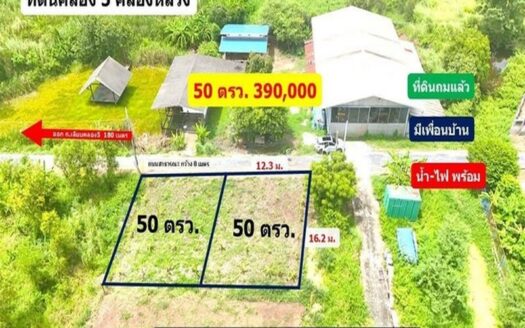 ที่ดิน #คลอง5 คลองหลวง ซอย 68 ตะวันออก 50 ตรว. 390,000 ถมแล้ว น้ำ-ไฟ 3 เฟส หน้าแปลง ติดต่อ คุณแอน Tel.&Line: 09