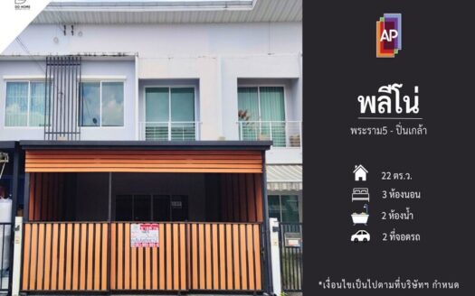 ขายทาวน์เฮ้าส์ หมู่บ้านพลีโน่ พระราม5-ปิ่นเกล้า (DD002194) พื้นที่ 22 ตร.ว. ฟังก์ชั่น : 3 ห้องนอน 2 ห้องน้ำ 1 ที่จอ