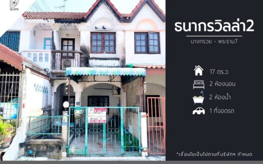 ขายทาวน์เฮ้าส์หมู่บ้านธนกรวิลล่า2 บางกรวย-พระราม7 (DD002144) พื้นที่ 17 ตร.ว. ฟังก์ชั่น : 2 ห้องนอน 2 ห้องน้ำ 1 ที่