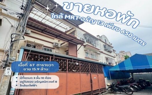 ขายหอพักจรัญสนิทวงศ์ซอย8ใกล้MRT จรัญ13 เดินท...