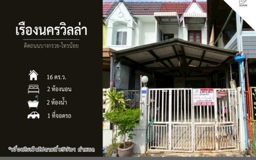 ขายหมู่บ้านเรืองนครวิลล่า ติดถนนบางกรวยไทรน้อย (DD002191) พื้นที่ 16 ตร.ว. ฟังก์ชั่น : 2 ห้องนอน 2 ห้องน้ำ 1 ที่จอด