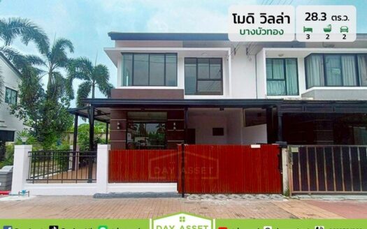 ขายทาวน์เฮาส์ 2 ชั้น หลังมุม หมู่บ้านโมดิ วิลล่า บางบัวทอง : Modi Villa Bangbuathong ทำเลดีเข้า-ออกได้ง่าย ใกล้ Cen