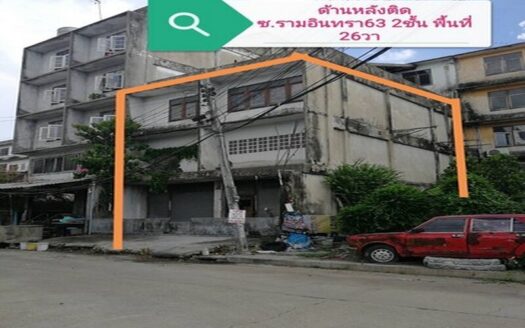 ขายอาคารพาณิชย์ 3 ชั้นครึ่ง ด้านหลัง 2 ชั้น เนื้อที่ 70 ตารางวา ติดปากซอยรามอินทรา 63 ราคาขาย 20 ล้านบาท สถานที่ใกล