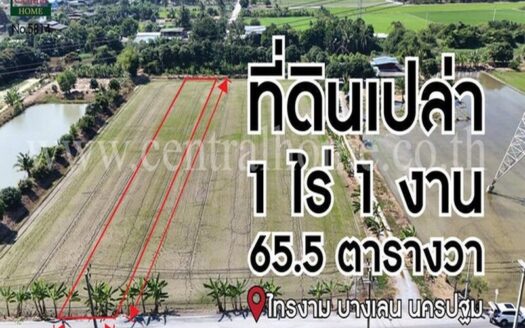 รหัสทรัพย์ 5814 ที่ดินเปล่า 1 ไร่ 1 งาน 65.5 ตร.ว ไทรงาม บางเลน นครปฐม ที่ตั้ง : ตำบลไทรงาม อำเภอบางเลน นครปฐม ราย