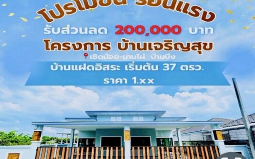 Vาย : บ้านแฝดใกล้ตลาดบ้านบึง เหลือหลังสุกท้ายแล้วนะคะ (บ้านหันหน้าไปทางทิศเหนือ) ต.มาบไผ่ อ.บ้านบึง จ.ชลบุรี (สนใจซ
