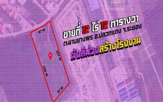 #ขายที่ดิน 12ไร่ 12 ตารางวา #ผังสีม่วงลาย #ทำเลสร้างโรงงาน #พิกัด : ต.มาบยางพร อ.ปลวกแดง จ.ระยอง #ราคาไร่ละ 4,000,0