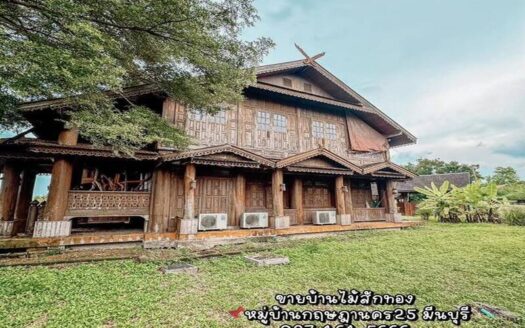 ขายบ้านไม้สักทองทรงล้านนา – บรรยากาศรีสอร์ท ติดทะเลสาบ หมู่บ้านกฤษดานคร 25 มีนบุรี กรุงเทพฯ แปลงมุม พื้นที่ 1 ไร่ 2