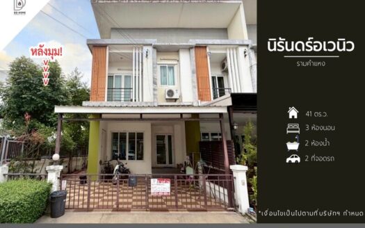 ขายหมู่บ้านนิรันดร์อเวนิว รามคำแหง หลังมุม (DD002026) พื้นที่ 41 ตร.ว. ฟังก์ชั่น : 3 นอน 2 น้ำ 2 ที่จอดรถ ทิศ : ตะว