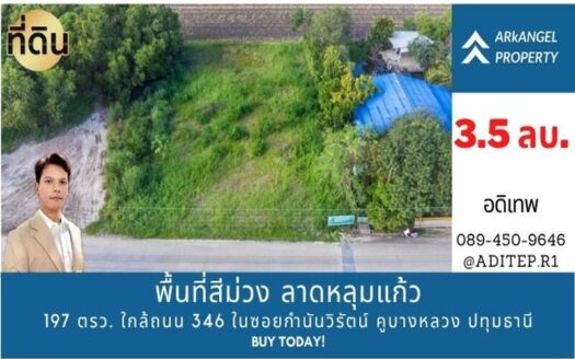 ขายด่วน! ที่ดินสีม่วง 197 ตรว. ใกล้ถนน 346 ในซอยกำนันวิรัตน์ คูขวางไทยซอย 4 คูบางหลวง ลาดหลุมแก้ว ปทุมธานี Property