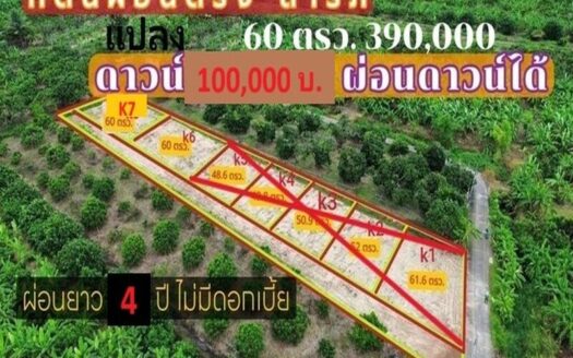 ขายที่ดิน 60ว. 390ส. ผ่อนได้ ใกล้วัดขัวมุง ข...