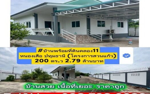 บ้านพร้อมที่ดินคลอง11หนองเสือ ปทุมธานี (โครงการสวนแก้ว) 200 ตร.ว 2.79 ล้านบาท ติดต่อคุณแอน โทร .098-798-9929 Line: