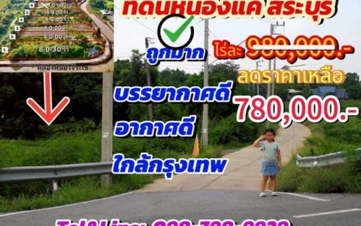 ที่ดินหนองแค สระบุรี อากาศดี ขับรถจากกรุงเทพเพียง 1 ชม. ไร่ละ 780,000 บาท แบ่ง 2 ไร่ 1,560,000 บาท ติดต่อคุณแอน โทร