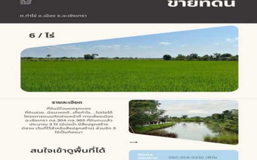 ขายที่ดิน 200 ตารางวา เจ้าของขายเอง ตำบลโสธร อำเภอเมืองฉะเชิงเทรา ฉะเชิงเทรา ที่ตั้ง : ตำบลโสธร อำเภอเมืองฉะเชิงเทร