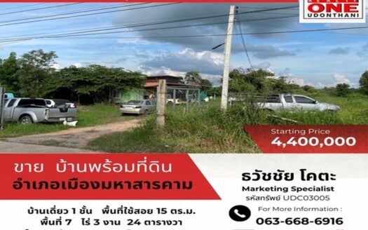 รายละเอียด ขายที่ดินพร้อมสิ่งปลูกสร้าง 7 ไร่ 3 งาน 24 ตารางวา ต.เขวา อ.เมืองมหาสารคาม หน้ากว้างประมาณ 65 เมตร ยาวปร
