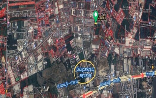 ขายที่ดินเปล่าพร้อมถม…ติดนิคมอุตสาหกรรมสมุทรสาคร ต.ท่าทราย อ.เมือง จ.สมุทรสาคร ผังเมืองสีชมพู เนื้อที่ 12ไร่(