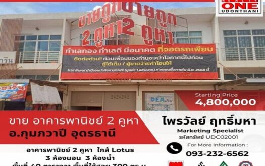 อาคารพานิชย์ 2 คูหา ใกล้โลตัส อ.กุมภวาปี จ.อ...