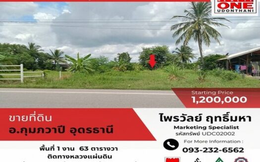 ที่ดินเปล่า 1 งาน 63 ตารางวา อ.กุมภวาปี จ.อุ...