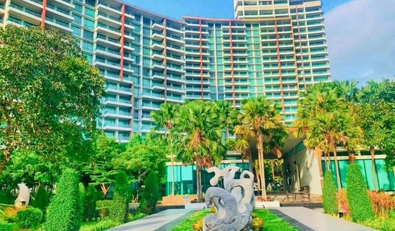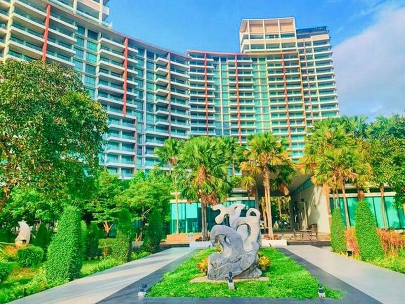 เดินทะลุไปสระว่ายน้ำส่วนกลางขนาดใหญ่ 4 สระ เดินลงทะเลได้เลย คอนโดติดทะเลบนชายหาดส่วนตัวที่เดียวในบางพระ