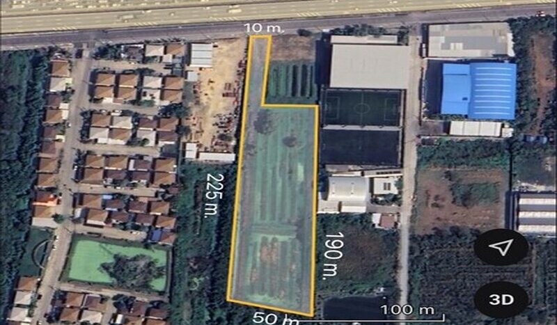หน้ากว้างติดถนน ~185 เมตร ลึก 40 เมตร