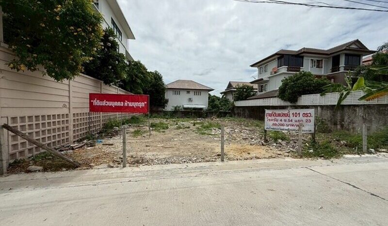 ขายถูกที่ดินสี่เหลี่ยมผืนผ้าถมแล้ว แถวโชคชัย 4 ซอย 54 (ต.รวมโชค) แยก 23 เนื้อที่ 101 ตรว. ทำเลดี แหล่งชุมชน ใกล้รถไฟฟ้าสายสีเหลือง