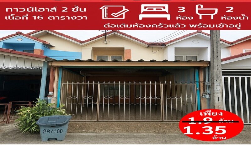 ทาวน์เฮ้าส์ 3 ชั้น ต่อเติมครัวเรียบร้อยเเล้วพร้อมใช้งาน
