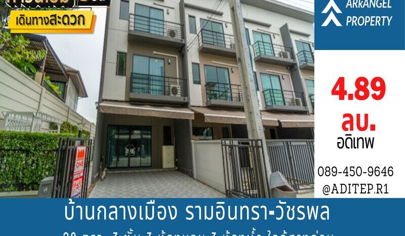 ขายทาวน์โฮม 3 ชั้น บ้านกลางเมือง รามอินทรา-วัชรพล 28 ตรว. 3 ห้องนอน 3 ห้องน้ำ ใกล้จุดขึ้นลงทางด่วน สุขาภิบาล 5