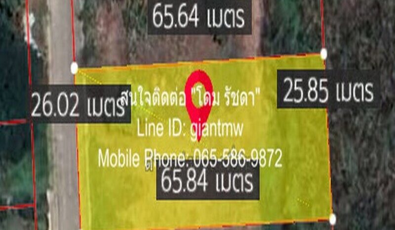 3. ที่ดินหน้ากว้างติดถนนคอนกรีต กว้าง 25 เมตร และมีความลึก 64 เมตร