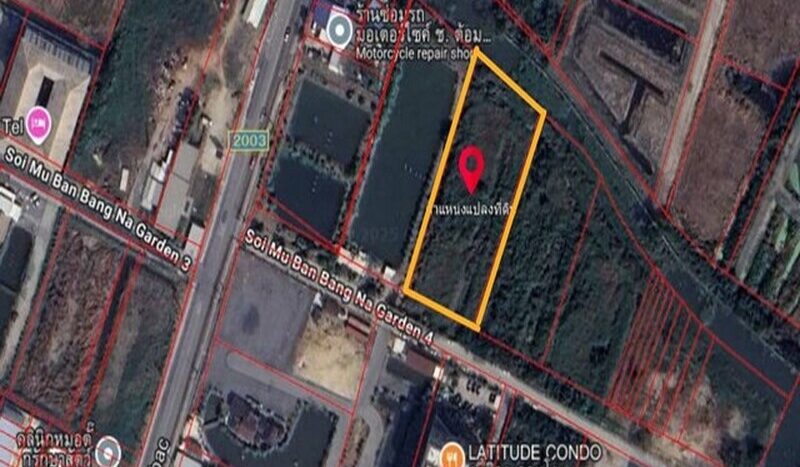 ขายที่ดินซอยบางนาการ์เด้น 4 เพียง 90 เมตรจากซอยเอแบค เหมาะสร้างออฟฟิศ, อพาร์ทเม้นท์, โกดัง ฯลฯ