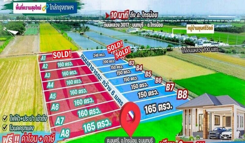 ขายที่ดินถูกที่สุดในย่านนนทบุรี ใกล้BigC ไทรน้อย
