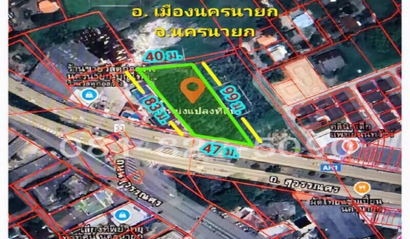 ขายที่ดินสวย ใกล้ รพ. นครนายก(1 กม.) ติดถนนสุวรรณศร (ทางหลวงแผ่นดินหมายเลข 33)