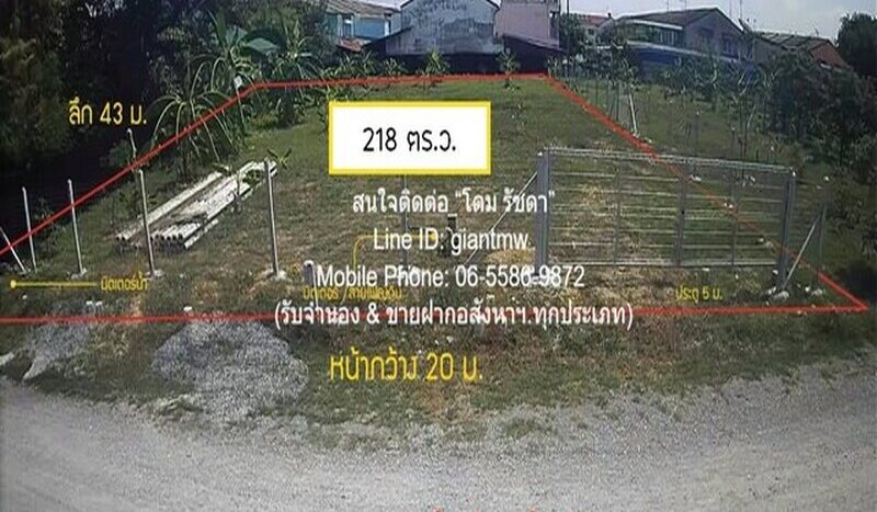 จุดเด่นของทรัพย์: เป็นที่ดินถมแล้วขนาดเล็ก ทรงสี่เหลี่ยม ที่มีราคาถูกที่สุดในตลาด อยู่ในซอยไม่ลึก และใกล้ถนนหลัก มีถนนหน้าที่ดินกว้าง 7 ม. พร้อมกับอยู่ใกล้สิ่งอำนวยความสะดวกในทุกมิติ เหมาะสำหรับทำบ้านพักอาศัยส่วนตัว หรือ Home Office