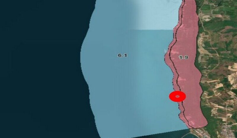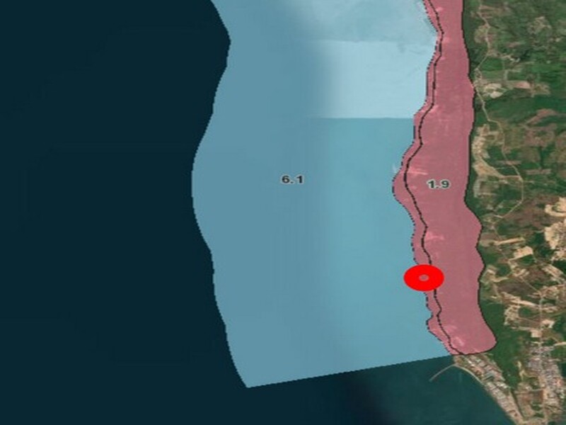 2) ด้านกว้างติดถนนสุขุมวิทยาว 180 ม. (ทางหลวงหมายเลข 3-เขตทางกว้าง 35 ม.) และมีความกว้างด้านติดทะเลยาว 320 ม.