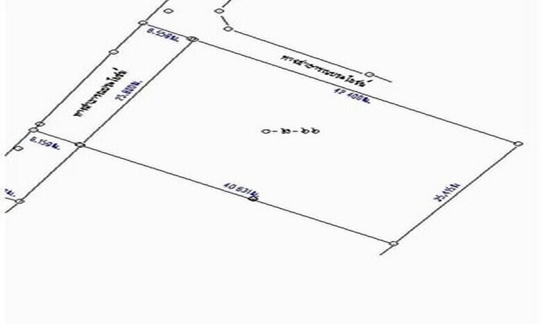 2. ที่ดินเป็นรูปทรงสี่เหลี่ยมผืนผ้า มีเนื้อที่ 266 ตร.ว. โดยมีขนาดหน้ากว้าง 26 ม. ลึก 40 ม. (ด้านหน้ากว้าง 6.16-8.56 ม.) & ด้านข้าง 4.7 ม.), แปลงหัวมุม (ติดถนนสาธารณะ 2 ด้าน)