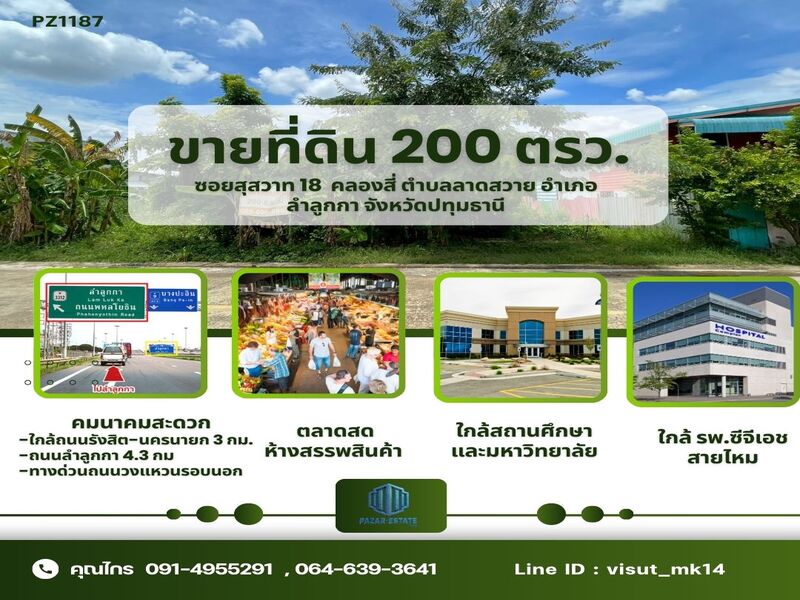 PZ1187 ขายที่ดิน 200 ตรว. ซอยสุสวาท 18