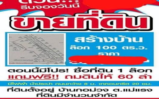 ขายที่ดิน115ไร่ ลดพิเศษ 46ล. ผ่อนได้ ฟรีโอน บ้านยุโรป3หลัง สาธารณูปโภค เหมาะทำรีสอร์ท คาเฟ่ ที่เที่ยว เกษตร ใกล้เทศบาล ต.ทากาศ อ.แม่ทา ลำพูน