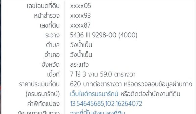 ขนาดที่ดิน : 7 ไร่ 3 งาน 59 ตารางวา