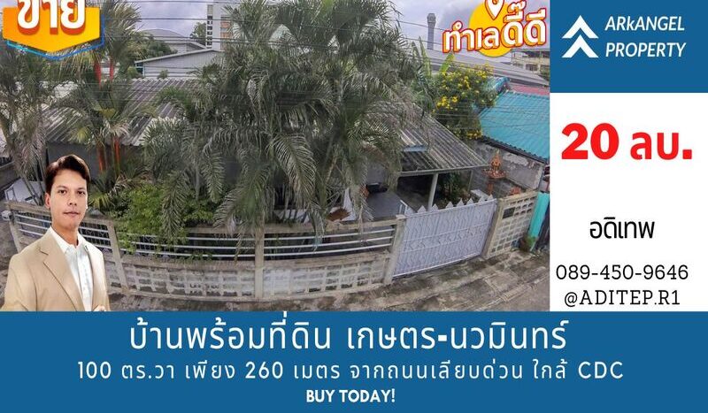 ขายบ้านพร้อมที่ดิน 100 ตร.วา เพียง 260 ม. จากถนนเลียบด่วนเอกมัย-รามอินทรา ใกล้ถนนเกษตร-นวมินทร์ ใกล้ Central Eastville, CDC, The Crystal