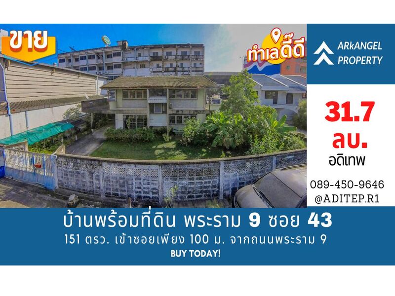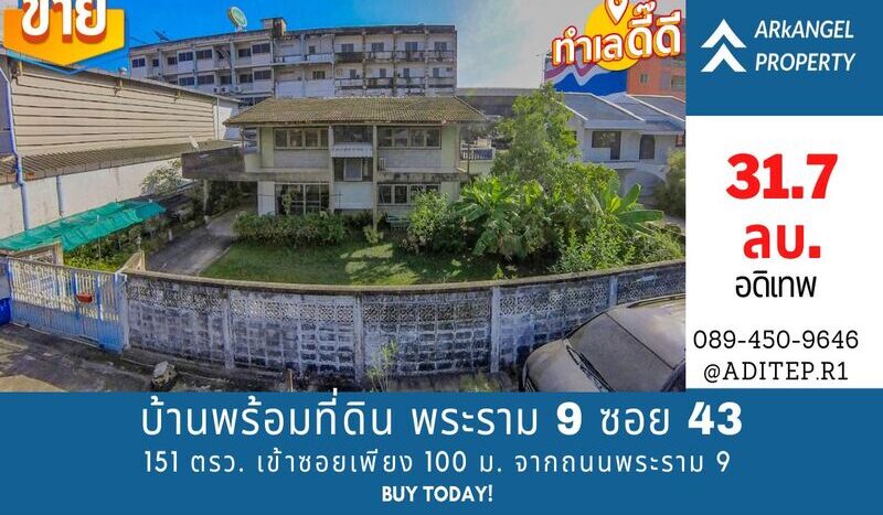 ขายบ้านพร้อมที่ดินแปลงใหญ่ ขนาด 151 ตรว. **ทำเลทอง ใจกลางเมือง ตั้งอยู่บนถนนพระราม 9 ซอย 43