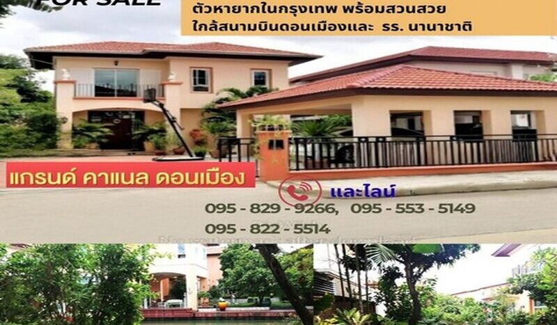 ขายบ้านเดี่ยวสวย 2 ชั้น เนื้อที่ 128.4 ตรว.ด้านหลังวิวติดคลองเวนิส มีท่าน้ำส่วนตัวพร้อมสวนสวยร่มรื่น หมู่บ้านแกรนด์ คาแนล ดอนเมือง บ้านสภาพใหม่มาก ใกล้สนามบินดอนเมือง,รถไฟฟ้าสีแดง,และโรงเรียนนานาชาติ ดอนเมือง กรุงเทพ