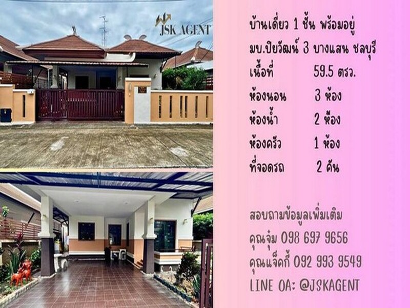 รหัสทรัพย์ของผู้ประกาศ: บ้านเดี่ยว 1 ชั้น หมู่บ้านปิยวัฒน์ 3 บางแสน ชลบุรี พร้อมอยู่