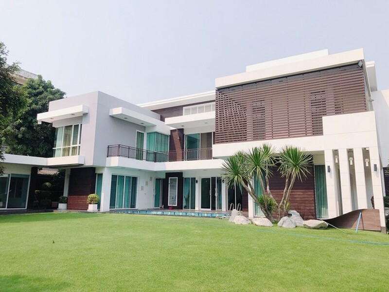 ขายบ้านเดี่ยว 2 ชั้น สไตล์โมเดิร์น 436 ตรว. ซอยรามอินทรา 117 พร้อมสวนและสระว่ายน้ำส่วนตัว ใกล้หมู่บ้านบ้านปัญญาและสนามกอล์ฟ