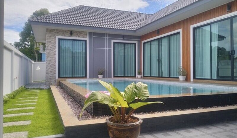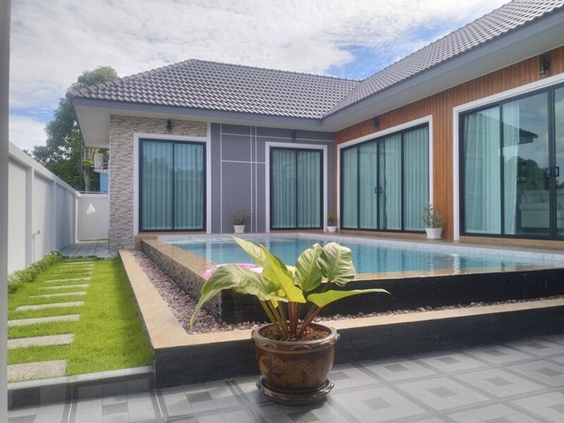 บ้านใหม่สไตล์พูลวิลล่า 3นอน4น้ำ2ที่จอดรถ ใกล้เขาและทะเล หมอกฝั่งทะเลบางเสร่ ชลบุรี