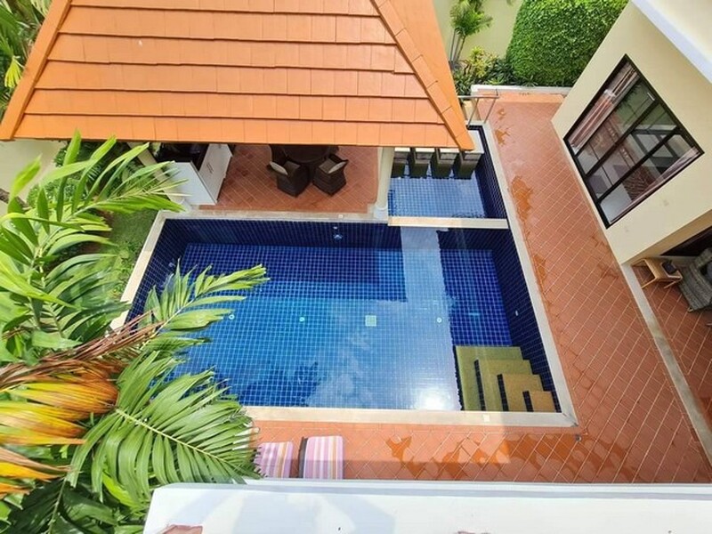 Beachfront pool villa for sale in Bang Saray, walkable to the beach.