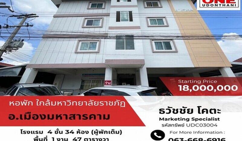 หอพักทำเลทอง ใกล้มหาวิทยาลัยราชภัฏมหาสารคาม 4 ชั้น 34 ห้อง