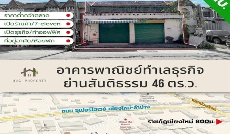 อาคารพาณิชย์ 2 ชั้น 2 คูหา เหมาะสำหรับนักธุรกิจรุ่นใหม่ ในย่านสันติธรรม เนื้อที่ 46 ตรว.