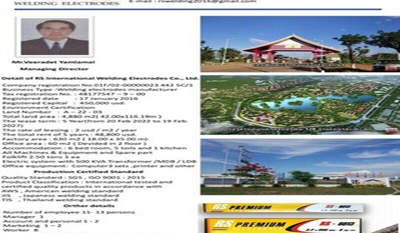 โอกาสทองสำหรับนักลงทุน ขายโรงงาน ผลิตลวดเชื่อม ในเขตนิคมอุตสาหกรรมไชยเชษฐา นครหลวงเวียงจันทน์ ประเทศลาว