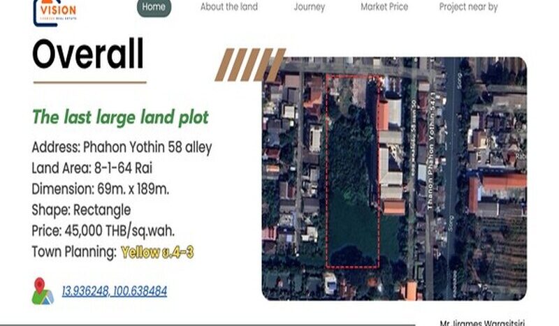 เนื้อที่ดิน: 8-1-64 ไร่(3,364 ตร.ว. หรือ 13,456 ตร.ม.)