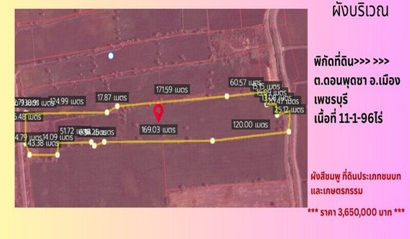 – ที่ดินเปล่า จ.เพชรบุรี ขายยกแปลง เนื้อที่ 11-1-96ไร่